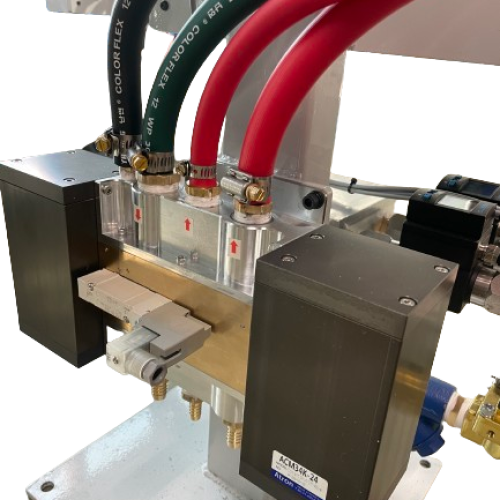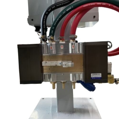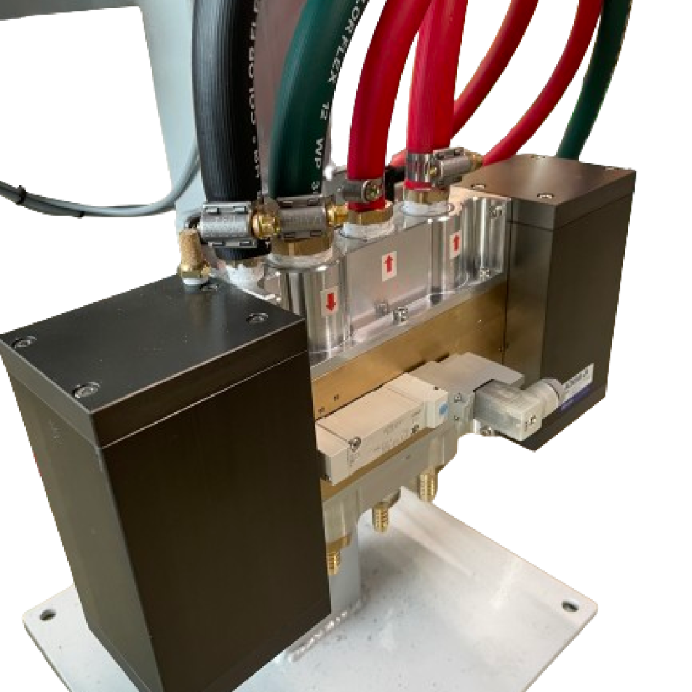 하지만 용접로보트의 용접팁을 교체하거나 용접로보트의 일시 점검 및 수리를 위해서는 용접로보트에 흐르는 냉각수를 제거 및 차단하여야 함으로 "냉각수차단벨브"로 냉각수를 빨아들여 용접팁 교체 및 장비 점검 시 냉각수가 밖으로 흐르지 않게 "진공상태"를 유지합니다.